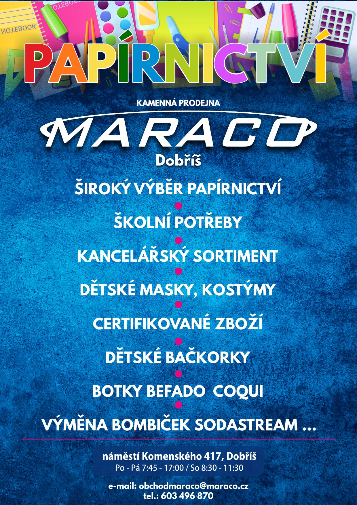 Provozujeme kamennou prodejnu Papírnictví Maraco Dobříš